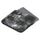 Painéis 3D sobrepostos criam uma vibração interdimensional, em preto e branco.