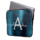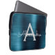 Azul e Cinza Folhas de Aço Inoxidável Folha Metálica Moderna e Capa de Monograma Elegante. Esta bolsa de laptop personalizada monificada pode ser personalizada para incluir seu nome inicial e próprio e fazer um presente de Natal ou Aniversário perfeito.