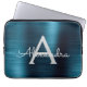 Capa Para Notebook Monograma Azul Metálico Moderno Chic Stainless Ste