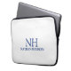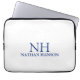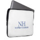 Bolsa de laptop moderna com um design azul e branco simples e mínimo com seu monograma em uma fonte em negrito junto com seu nome.