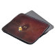 Uma bolsa de laptop geométrica pesada monograma desenhada com girassóis e rosas de casacos em um arame de ouro sobre um fundo rico de pedra burguesa.