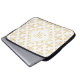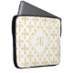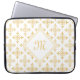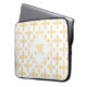 Uma bolsa de laptop branca de luxo e dourada de quatro pontos com padrão floral quatre de 15 polegadas que pode ser personalizada adicionando seu monograma. Este elegante design de molho úmido monograma traz o seu lado sofisticado. Imagem impressa plana, não metálica.