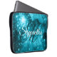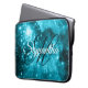 Crie sua própria bolsa de laptop celestial de chá aqua estrelada. Monograma rico de caligrafia escura, em conjunto com um moderno roteiro branco para seu primeiro nome. Personalize a cor, o estilo ou o tamanho da fonte. Este presente feminino foi criado com uma imagem nebulosa espacial da NGC 3603 com uma adorável camada aqua e teal ombre.