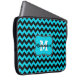 Uma elegante bolsa de laptop personalizável com um padrão de chevron azul preto e turquesa impresso nele. Adicione seu nome e monograma.
