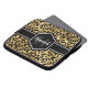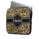 Ouro quico e bolsa de laptop de 13 polegadas de impressão leopardo preto com nome personalizado e modelo monograma. Um padrão de impressão animal de safari giro e tendencioso veio com seu próprio pedaço de personalização.
