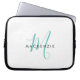 Bolsa de laptop de Monograma Moderno Elegante do Script Branco Teal. Um monograma elegante de um roteiro teal combinado com uma fonte limpa de san-serif preta faz um olhar contemporâneo.