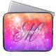 Crie a sua própria bolsa de laptop de fotos de estrelas cintilantes, cor de laranja, coral, rosa, rosa quente e violeta, violeta e brilhante. Rico royal púrpura calliografia monograma emparelhado com um moderno roteiro branco para seu primeiro nome. Personalize a cor, o estilo ou o tamanho da fonte. Este presente feminino foi criado com uma imagem nebulosa da NGC 3603 com um adorável filtro do sistema aplicado. Veja os outros filtros. Foto do espaço artístico monograma.