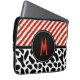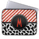 A Bolsa de laptop de Monograma Personalizar Padrão Preto de Stripe Branca Vermelha é uma tendência e na moda para segurar o seu Laptop. Excelente de adicionar esse toque especial ao seu laptop ou dar como presente. Excelente para a sua. Personalize-o com a sua inicial.