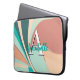 Esta abstrato moderna bolsa de laptop é atraente para os olhos e faz uma declaração com o seu aspecto retrorativo das espirais de pêssego, lacre, aqua e crosta. Adicione um nome e inicial para personalizá-lo. Criado pela imprensa simplesmente de farmácia.