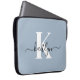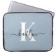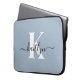 Esta simples e elegante bolsa de laptop azul empoeirada de 15" com o seu primeiro nome numa letra de texto de tendência a preto e a sua primeira inicial numa fonte moderna de boné a branco é perfeita para si. É na moda e moda e, no entanto, muito clássico. É único, como você!