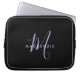 Bolsa de laptop de Monograma de Script de Lavanda Negra Moderna Elegante. Um monograma elegante de script de Lavanda combinado com uma fonte branca san-serif limpa permite uma aparência contemporânea.