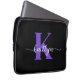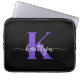 Esta simples e elegante bolsa de laptop preta de 13" com seu primeiro nome em uma letra de script de tendência em branco e sua primeira inicial em uma fonte moderna de boné em roxo é perfeita para você. É na moda e moda e, no entanto, muito clássico. É único, como você!