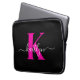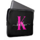 Esta simples e elegante bolsa de laptop preta de 13" com seu primeiro nome em uma letra de script de tendência em branco e sua primeira inicial em uma fonte moderna de boné em rosa-quente é perfeita para você. É na moda e moda e, no entanto, muito clássico. É único, como você!