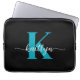 Esta simples e elegante bolsa de laptop preta de 13" com seu primeiro nome em uma letra de script de tendência em branco e sua primeira inicial em uma fonte moderna de boné em tom é perfeita para você. É na moda e moda e, no entanto, muito clássico. É único, como você!