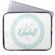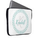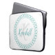 Proteja o seu laptop enquanto estiver em viagem com uma Bolsa de laptop de Monograma Decorativo Teal. A design de bolsa de laptop apresenta um círculo decorativo teal com um monograma e nome que você pode personalizar. Itens adicionais disponíveis com este design, bem como uma variedade de cores.