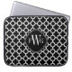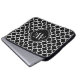 © 2012 Designs socialitas. Proteja o seu laptop de 14,5" ou inferior do uso diário com esta manga de neoprene padrão quatrefoil preto e branco. Nossa elegante faixa preta é um lugar perfeito para adicionar seu monograma, nome ou iniciais. Observe que a capa funciona melhor com laptop de 14,5" ou menores. Um laptop de 15" terá um ajustado muito apertado.