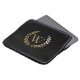 Esta elegante bolsa de laptop preta personalizada apresenta seu monograma em ouro falso enquadrado por uma coroa brilhante de ouro brilhante correspondente. Desenhada por Susan Coffey.