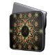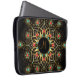 Proteja seu laptop com estilo com esta manga personalizada de monograma, com um padrão vibrante de ouro, turquesa e mandala vermelha — ideal para vibrações arrojadas, artísticas e brilhantes.