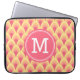 Esta bolsa de laptop monograma de na moda apresenta um padrão geométrico único em tons de rosa-pincel. Personalize-o substituindo o texto do marcador de posição. Para obter mais opções, como alterar a fonte e seu tamanho, clique no botão "Personalizar". *Observe que a Marca d'água do Zazzle que aparece na visualização de zoom NÃO aparecerá no produto impresso final. © Rosewood e Citrus