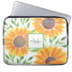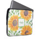 Esta bolsa de laptop única apresenta um girassol de cor d'água e um padrão foliar em tons de amarelo e verde. Facilmente personalizável com seu nome e monograma. Original Watercolor © Michele Davies.