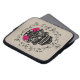 Proteja o seu laptop com uma manga de açúcar no crânio de hipster de tendências. Um crânio açucarado com várias flores e rosas, com um design legal urbano funk, com espirais de ornamentado e padrões de textura antigos. Um quadro de vinha cerca o crânio. Textura falsa de burlap. Celebre o Dia dos Mortos ou o Dia de los Muertos no México com este esqueleto único calavera. Perfeito para festas e comemorações. Clique em Personalizar para adicionar um monograma ou nome, alterar cor ou fonte— e crie o seu único design! Por Marisu Valencia™.