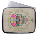 Proteja o seu laptop com uma manga de açúcar no crânio de hipster de tendências. Um crânio açucarado com várias flores e rosas, com um design legal urbano funk, com espirais de ornamentado e padrões de textura antigos. Um quadro de vinha cerca o crânio. Textura falsa de burlap. Celebre o Dia dos Mortos ou o Dia de los Muertos no México com este esqueleto único calavera. Perfeito para festas e comemorações. Clique em Personalizar para adicionar um monograma ou nome, alterar cor ou fonte— e crie o seu único design! Por Marisu Valencia™.