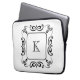 Uma bela bolsa de laptop de monograma preto e branco. Rochas e estrutura monográfica florescente. Adicione a sua inicial para personalizá-la.