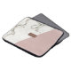 Uma bela bolsa de laptop fina de efeito de couro rosa pincelado e mármore branco com uma falsa placa metálica de rosa de ouro 3D que segura suas iniciais. Tudo fabulosamente falsa e é um efeito visual impresso. Nenhuma vaca rosa ou criatura marmoreada foi prejudicada no fazer. Adicione suas iniciais e deixe que ele cuide do seu técnico.