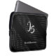 bolsa de laptop com monograma de prata Na moda sobre padrão negro geométrico com ornamento de bolinhas de folha prateada (um ornamento de folha prateada - são simulados). Para criar e personalizar seu modelo de Monograma Pessoal. Business Man Fashion Graphic design.Eletrônicos > Tablet & Laptop Capas > Capas Laptop > Oferta de tendências do Bolsa de laptop (para ele) de "Empresário bem-sucedido" - coleção. Desdecoração de presente elegante para um amigo, irmão, marido, parceiro comercial ou design de conceito para negócios de arranque, aniversário, aniversário, feriado, dia de pai, perfeito para todas as ocasiões. Personalize o seu Design da Trendy Elegant.