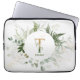 Esta bolsa de laptop bonito apresenta uma faixa verde e suculenta de aquarela com um alfabeto "T" dourado e verde para ser personalizada com seu nome embaixo.