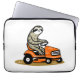 Imagem engraçada de uma preguiça num cortador de grama.