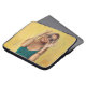 Capa Para Notebook Mulher em bralette azul segurando óculos de sol co