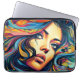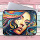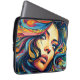 Proteja o seu laptop com esta bolsa de laptop divertida em um estilo pop de arte do rosto de uma mulher em cores vibrantes.