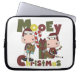 Duas vacas em bonés de meia, presentes do Natal, luzes do feriado, bastões de doces, e texto vermelhos que lê de "o Natal Mooey" em t-shirt do feriado, canecas, cartões, etiquetas, sacolas, pulsos de disparo de parede, caixas da lembrança, ornamento, chaveiro, e outros roupa e presentes bonitos do feriado do tema da vaca.