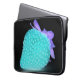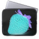 Possui um morango azul/turquesa brilhante com um topo roxo/ rosa com um pano de fundo preto. Muito brilhante e divertido.
