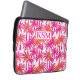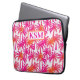 Esta bolsa de laptop personalizável apresenta um padrão de palmeiras cor-de-rosa-néon e laranja.