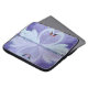 A pintura retrata cisnes brancas de neve. O par está nadando num lago sonhador em tons de roxo. O gráfico está bonito em uma bolsa de eletrônicos.