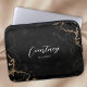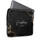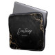 Estojo de laptop com fundo de mármore preto e dourado e fonte de caligrafia chic para seu nome ou iniciais. O gabinete de eletrônicos de monograma de script inclui espaço para adicionar seu nome ou iniciais, e você pode até mesmo adicionar seu logotipo comercial para torná-lo mais corporativo. Este saco de laptop de mármore preto e na moda elegante deve causar uma impressão enquanto protege seu laptop quando estiver em movimento.