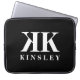 Nome do monograma duplo glamouroso, bolsa de laptop inicial de design. Cobrir de computador personalizado para ele ou para ela. Modelo clássico com letras iniciais traseiras. Cor preta e branca ou personalizada. Típica de aparência luxuosa. Faça o seu próprio para casa ou escritório. Glamorosa ideia de presente de aniversário para homens, mulheres e crianças.