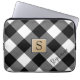Búfalos roxos preto e branco verificam bolsa de laptop com monograma no quadrado castanho central com bordas brancas e pretas. Personalize ainda mais com um nome ou outro texto personalizado no canto inferior direito em uma fonte moderna de script editável (ou exclua o texto de amostra para deixar o vazio de área). ALTERAÇÕES: Altere o estilo, tamanho, cor e posicionamento da fonte de texto para uma aparência personalizada clicando em PERSONALIZAR MAIS na seção PERSONALIZAR. Entre em contato com o designer por meio do Zazzle Chat ou makeitaboutyoustore@gmail.com se você quiser que este design seja modificado, em outro produto ou quiser coordenar itens.