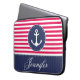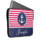 Trendy red & blue bolsa de laptop com âncora e texto personalizável.