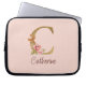 Capa Para Notebook Nome Personalizado Folha de Ouro Rosa Bege Flores