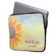 Esta única Capa Lap Top é decorada com um girassol amarelo sobre fundo de aquarela. Facilmente personalizável com seu nome e sua ocupação. Use a opção Personalizar mais para alterar o tamanho, o estilo ou a cor do texto, se desejar. Porque nós criamos nosso próprio trabalho de arte você não encontrará essa imagem exata de outros designers. Original Watercolor © Michele Davies.