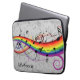 Notas musicais pretas que flutuam em um arco-íris de cores de roda do arco-íris. O fundo é notas musicais cinzentas em uma máscara mais clara. Adicione seu próprio nome personalizado para criar um presente original para o melómano. sgb01