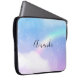 Uma bolsa de laptop com uma imagem de fundo suave e adorável. Azul pastel e nuvens cor-de-rosa com um arco-íris mágico.