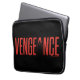 Texto tipográfico de "vingança" com Batman na chuva em frente à letra "A".