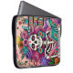 Design vibrante e colorido com um cartão de tarô engraçado com um esqueleto feminino. O esqueleto tem cabelos cor-de-rosa silvestres com flores, uma face de crânio de açúcar, e está segurando um livro aberto. O texto colorido diz: "O worm". Esse design está disponível em uma grande variedade de produtos.