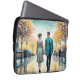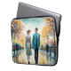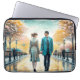 Bonito arte ai aquarela. Um homem e uma mulher que passam um pelo outro na rua de Londres esfregando as mãos enquanto passam. Uma reunião romântica.