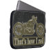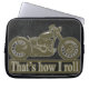 Para manter seu computador portátil seguro e com um estilo de excelente. Uma moto com as palavras "é assim que eu rolo". O fundo é uma imitação impressa do couro preto