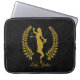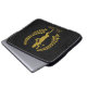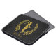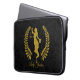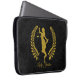 Ilustração do logotipo Lady Justice em uma textura dourada em um fundo preto e cinza.